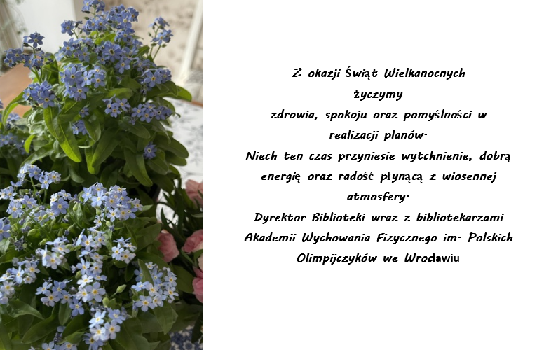 Szanowni Czytelnicy! Uprzejmie informujemy, że w okresie świątecznym Biblioteka Główna Akademii Wychowania Fizycznego im. Polskich Olimpijczyków we Wrocławiu w dniach 03-06.04.2026 (piątek-poniedziałek) będzie nieczynna. Natomiast… Dowiedz się więcej: Godziny otwarcia - Aktualizacja cytowań